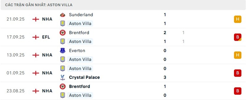 Phong độ chủ nhà Aston Villa đang ở mức báo động. Sau 5 vòng đấu đầu tiên, họ vẫn chưa thể tìm được chiến thắng nào, chỉ giành được 3 điểm với thành tích hòa 3 và thua 2. Việc để Sunderland cầm hòa dù được chơi hơn người là minh chứng rõ nhất cho sự bất ổn của hàng công lẫn hàng thủ. Matty Cash là điểm sáng hiếm hoi khi trực tiếp ghi bàn ở vòng đấu vừa rồi, nhưng tập thể của Emery thiếu sự bùng nổ và không tận dụng được cơ hội. Đáng lo hơn, thống kê cho thấy Villa mới chỉ tạo ra chưa đến 3 bàn thắng kỳ vọng (xG 2.9), thấp thứ hai giải đấu, điều chưa từng xảy ra trong lịch sử CLB sau 5 vòng mở màn. Họ cũng vừa bị loại ở Cúp Liên đoàn sau loạt luân lưu trước Brentford, càng khiến tinh thần toàn đội thêm nặng nề. Trên sân nhà, Villa Park chưa thể trở thành điểm tựa khi người hâm mộ ngày càng mất kiên nhẫn với Unai Emery. Chuyên gia nhận định bóng đá tin rằng một thất bại nữa rất có thể sẽ đẩy ông vào thế ngàn cân treo sợi tóc.