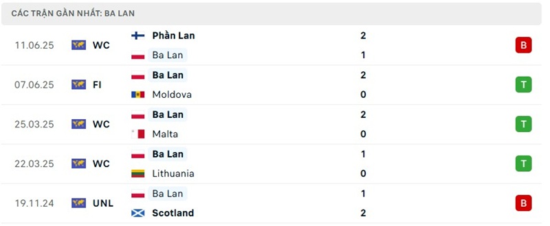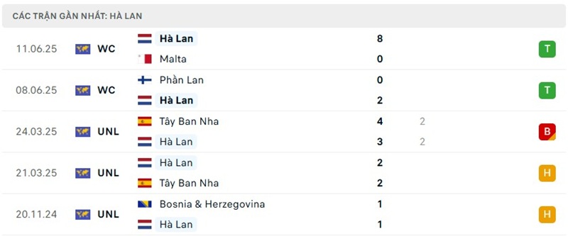 Phong độ của Hà Lan vs Ba Lan gần đây