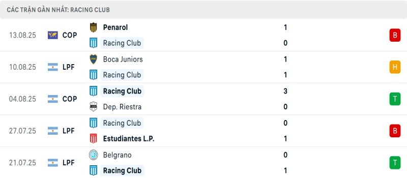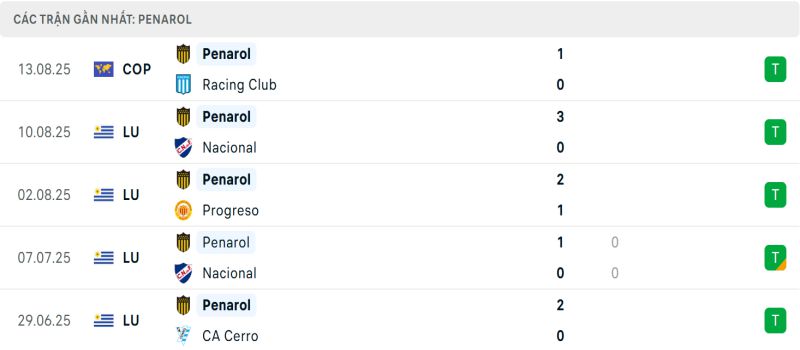 Phong độ của Racing Club vs Penarol Montevideo gần đây