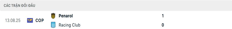 Thành tích đối đầu giữa Racing Club vs Penarol Montevideo