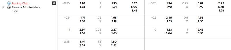 Tỷ lệ kèo Racing Club vs Penarol Montevideo