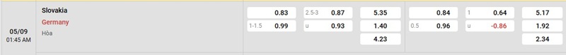 Soi kèo Slovakia vs Đức qua tỷ lệ
