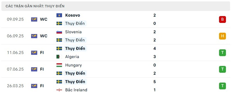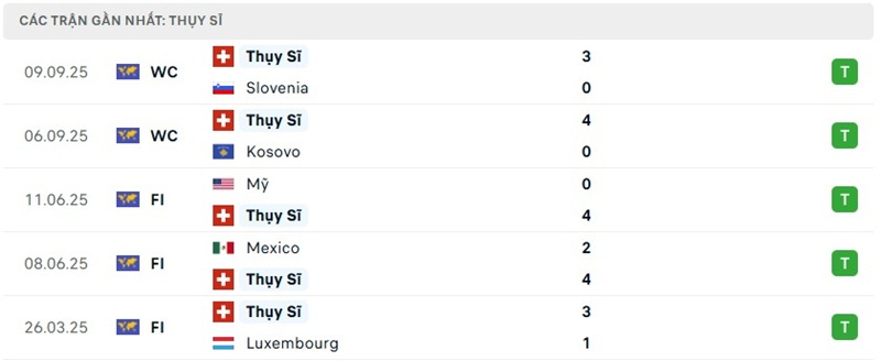 Phong độ của Thụy Điển vs Thụy Sĩ gần đây